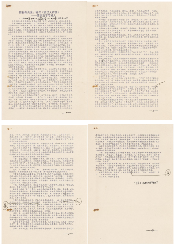 本世纪初直到生命最后一刻,陆老师又“与所剩无多的时间赛跑”,全身心投入主编《中华汉英大词典》。《汉英大词典》收录了大量与中国传统文化、传统思想、习俗等有关的词汇。在业已出版的上册中,仅成语就逾2万条。此外,不乏古汉语条目,甚至象形文字,这在同类型同体量的汉英词典中是一个突破。陆先生曾提出,《中华汉英大词典》的一部分受众是国人,他希望可以让不熟悉古字、古词和舶来专业术语的年轻读者,通过名言、熟语、谚语、歇后语等汉语词条所对应的英语解释,提升对本族语的认知,补一补传统文化的课。陆先生心心念念要“把汉语、英语中最优美的部分通过词典这个窗口展示出来”,他也确实做到了。