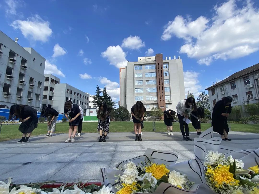在场的师生党员在烈士广场的雕塑前静默、三鞠躬后,排队献花。他们表示,作为新时代的青年学人,要铭记并弘扬烈士为国家、为人民无私奉献的精神。俄文系校友、2018级本科生党支部书记、本科生辅导员贾怡锐表示:“高汝河烈士是我们俄文系的老师,同时也是我们学生工作的前辈,他的故事时刻激励着我们。作为党支部书记、辅导员,我们要坚持立德树人的根本任务,引导学生在一段段感人至深的故事中铭记英烈顽强奋斗的精神,继承先辈遗志,传承复旦红色基因,这是对历史上为党、为国家、为人民献出生命的所有英灵的最好告慰。