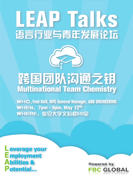 语言行业与青年发展论坛讲座“跨国团队沟通之钥”将于5月12日(下周一)晚7:00-9:00在文科楼510室开讲,欢迎广大同学参加!
