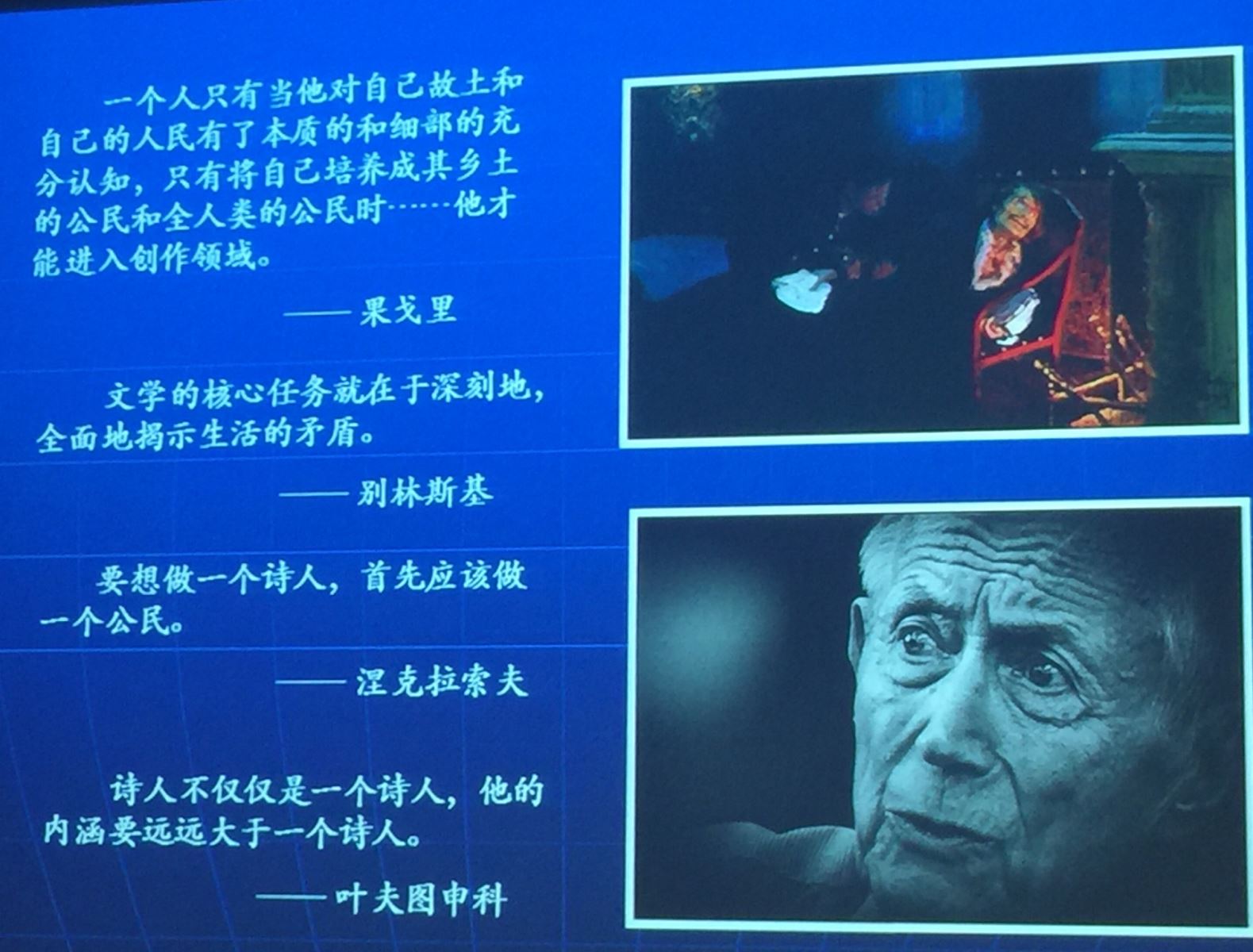 在讲座中,贝老师以“灵感”、“神性”、“生命”、“眼泪”、“爱情”五个关键词为切入点,结合生动有趣的实例,带领大家一窥俄罗斯文学、音乐、舞蹈、绘画、雕塑、电影等艺术,剖析了它们的表现手法和反映出的俄罗斯社会现象、民族文化与心智。贝老师的解说幽默风趣,教室里不时发出会意的笑声,场面轻松、活跃。贝老师的讲演结束后,俄文系同学就当代俄罗斯如何扩大自身文化影响、当代俄罗斯艺术家们在社会生活中的立场和站位等问题向贝老师提问,并得到了精妙的解答。通过讲座,同学们不仅领略了俄罗斯美轮美奂、辉煌壮丽的文化艺术,学习热情得以激发,更体会到作为俄语人的幸运和责任。