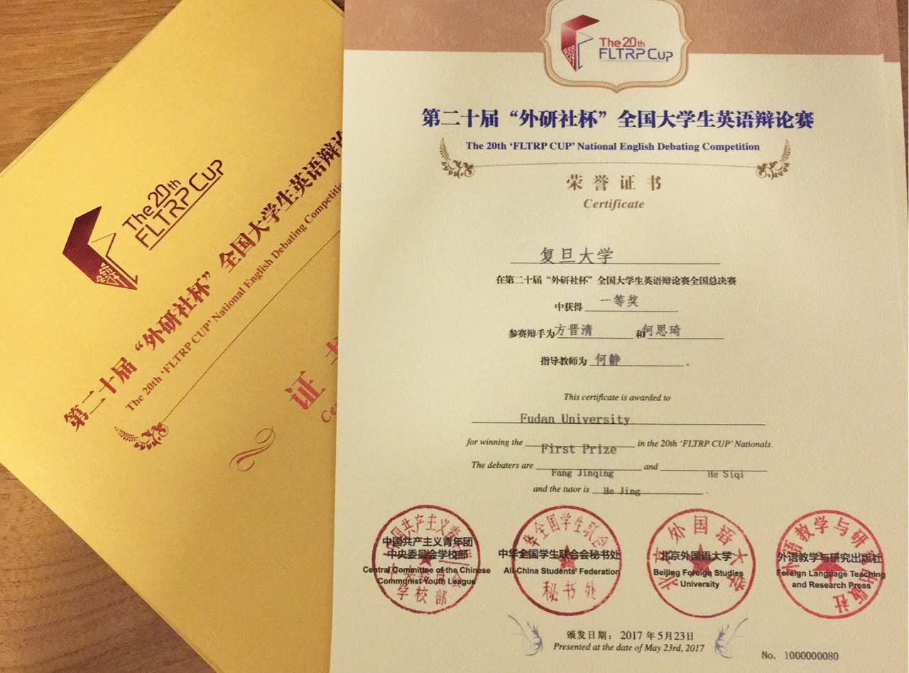 英语系2013级本科方晋清与英语系2016级本科何思琦同学(指导教师何静)代表Uwin电竞,Uwin电竞(中国)在全国决赛中获得一等奖,何思琦获最佳辩手称号。