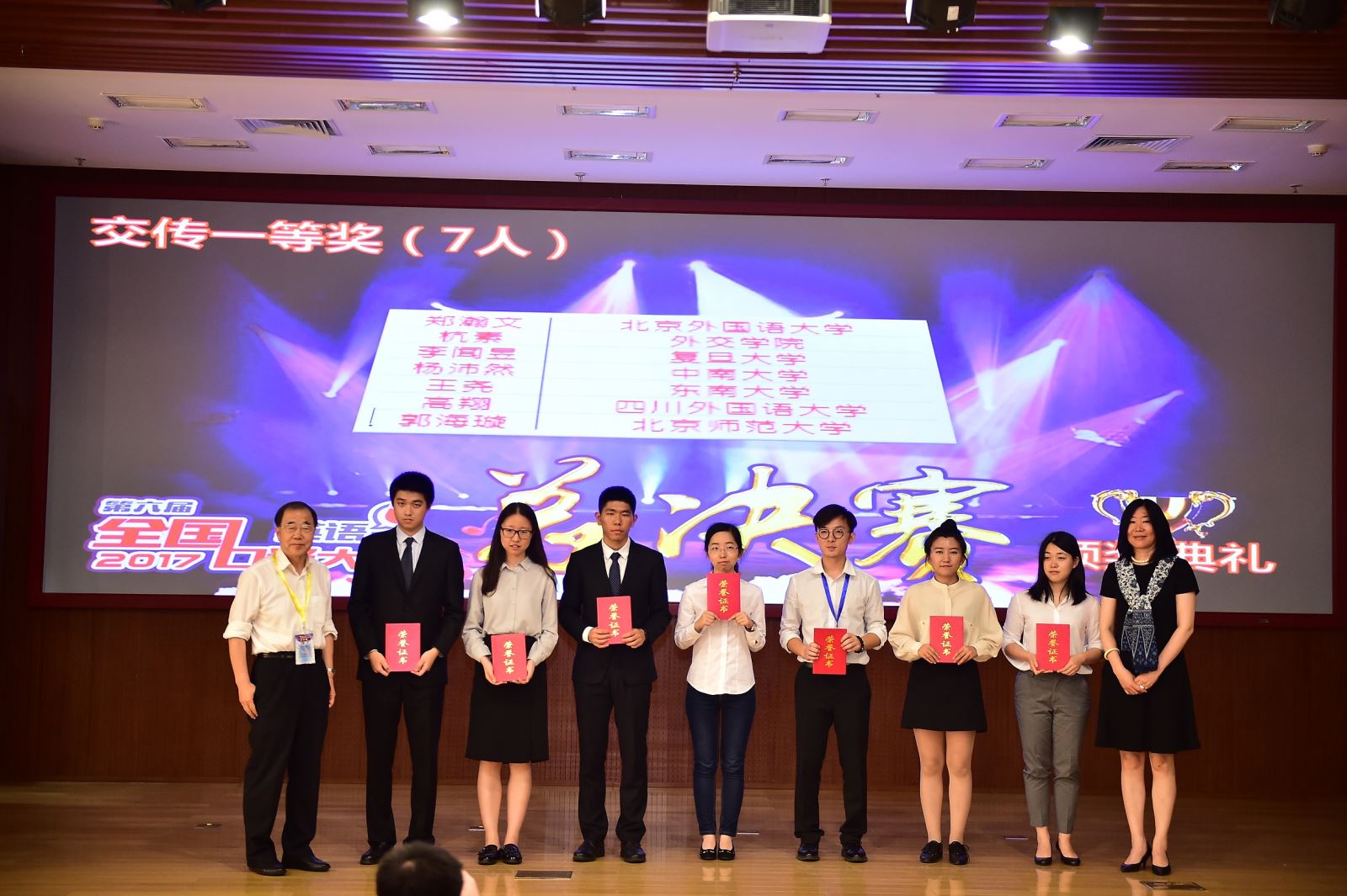 第六届全国口译大赛(英语)于2017年6月17日上午在北京师范大学拉开序幕,外文学院14级翻译系的李闻昱同学在为期两天的无差别激烈角逐(本科与硕士混赛)中,一路过关斩将,表现突出,最终荣获全国交传总决赛一等奖。