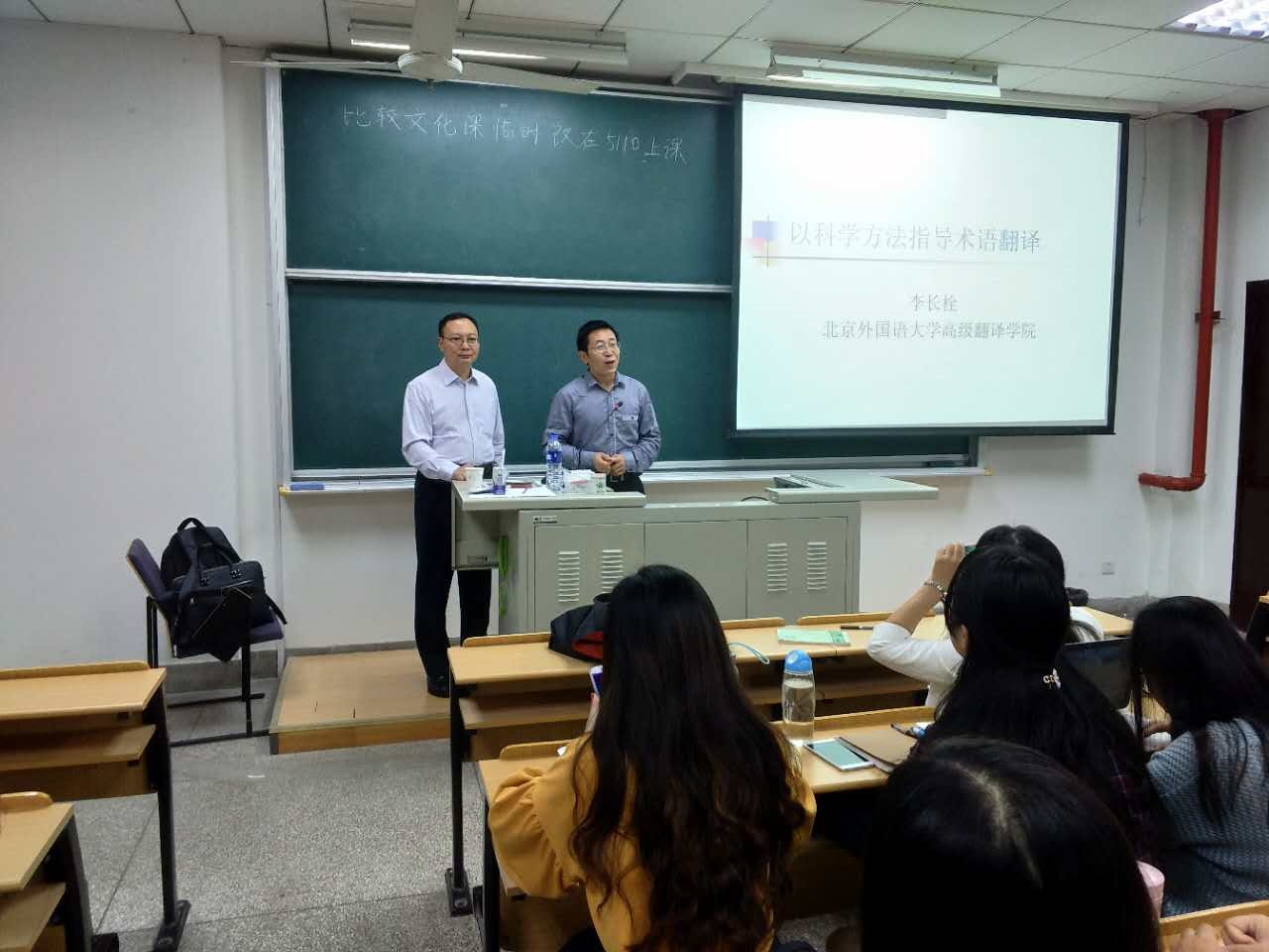 2017年10月11日上午,由Uwin电竞,Uwin电竞(中国)外文学院主办的系列讲座之第二场在第五教学楼正式开讲啦!现场气氛热烈,座无虚席,许多对翻译研究感兴趣的小伙伴们都早早慕名前来,以期感受北外高翻名师李长栓老师的风采。李老师继昨晚所作的题为“翻译是发现和再现真相的过程”的讲演后,又紧接着奉献了一场紧扣“以科学方法指导术语翻译”为主题的演说。本场讲座由王炎强老师担任主持。