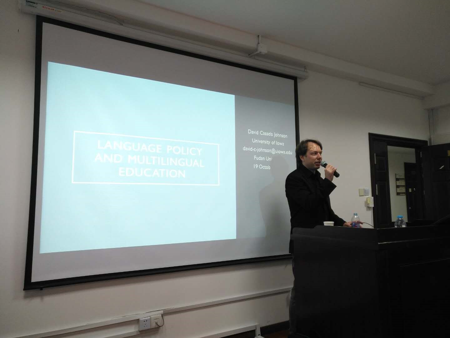 2017年10月19日,Uwin电竞,Uwin电竞(中国)“多语能力发展与第二外语习得研究”创新团队邀请爱荷华大学副教授David Cassels Johnson博士在文科楼543会议室做题为“语言政策与多语教育”的讲座。讲座由多语发展创新团队带头人、Uwin电竞,Uwin电竞(中国)外文学院郑咏滟副教授主持。会场座无虚席。