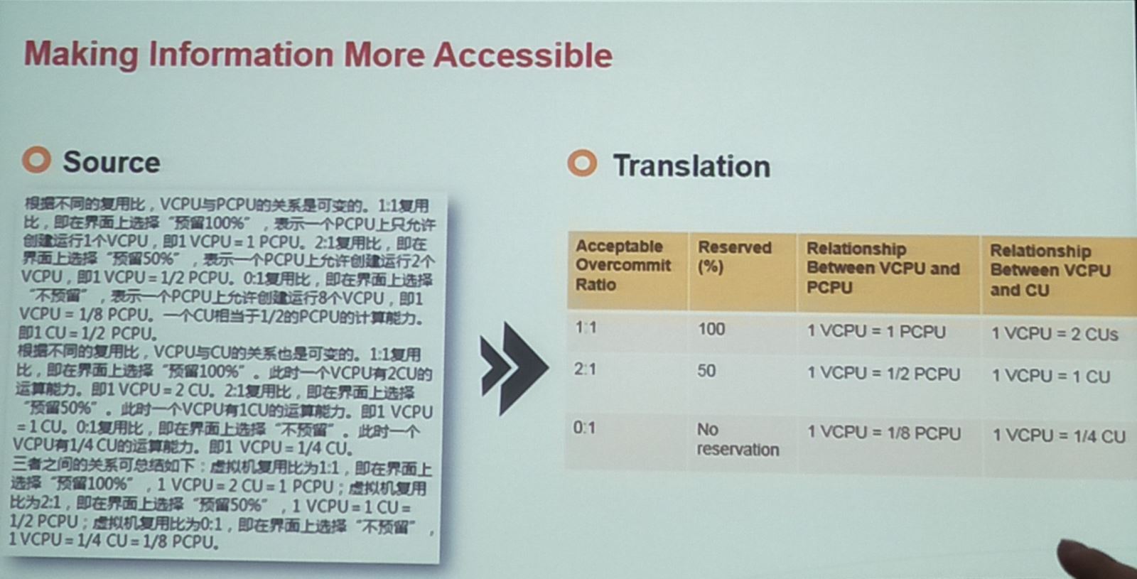此外,技术翻译的创新也刻不容缓。目前,华为日均翻译需求达数百万字,并且交付时间短,质量要求高。面对如此繁重的任务,仅凭人力远达不到公司对于翻译中心的要求。因此华为加大了在机器翻译领域、在线翻译平台以及各种翻译模式等领域的投入,使人机协同翻译成为目前翻译中心的主要工作模式。陈先生还指出人工智能的发展成熟必然会带来新一轮的技术革新,并且这种革新在翻译领域已经初见端倪,其中最明显的便是神经机器翻译技术(NMT)的使用。NMT因其强大的数据中心使得机器越来越会说“人话”,越来越智能。陈先生还给大家展示了针对机器翻译的图灵测试,其结果表明,对同一篇文档而言,机翻和人翻的界限越来越模糊,各自所产出的译文质量差别越来越小,这再次说明机器翻译的强大优势。
