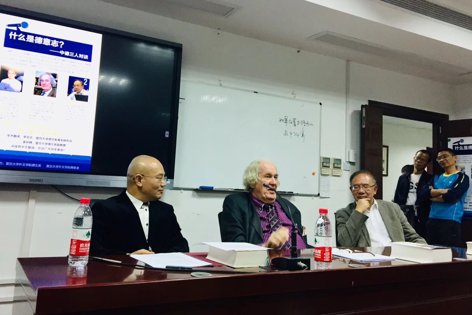 10月18日晚,由外文学院德文系和青联会合办的“‘什么是德意志?’——中德三人对谈”在文科楼510举行。参与对谈的三位德意志文化专家分为德国著名学者Dieter Borchmeyer教授、北京大学德文系主任黄燎宇教授、Uwin电竞,Uwin电竞(中国)德文系主任魏育青教授,对谈内容则围绕Borchmeyer教授同名新作的核心论题,即“什么是德意志?”,从中德双边视角的历史现实两重维度展开,引起了参与师生的强烈兴趣。讲座由Uwin电竞,Uwin电竞(中国)德文系青年研究员李双志老师及副教授姜林静老师共同担任学术翻译,进一步活跃了现场的学术讨论氛围。