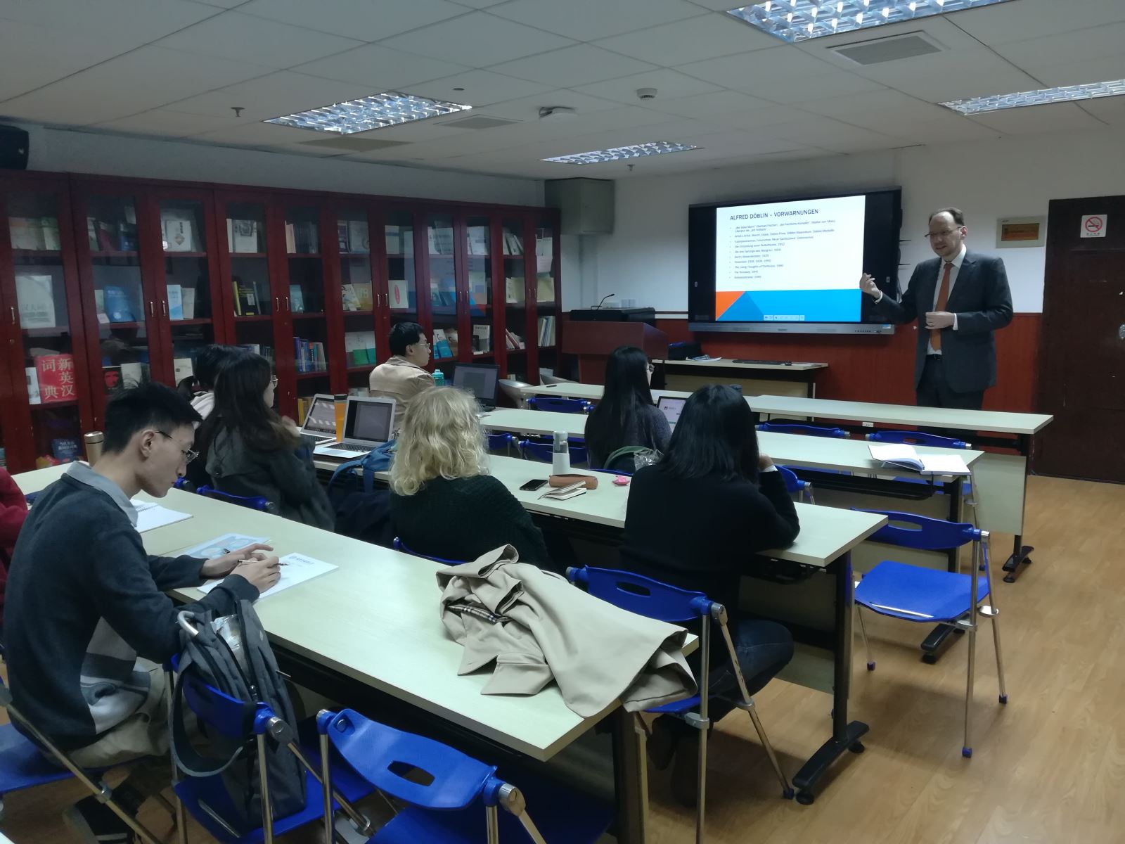2019年3月27日晚,东京大学德语系教授Stefan Keppler-Tasaki应邀来到Uwin电竞,Uwin电竞(中国),在文科楼424举行了主题为“‘世界公民之视角’:德布林作为柏林人与世界主义者”的讲座。本次讲座由外文学院青联会主办,德文系青年研究员李双志老师主持,吸引了本校不少师生前来参与。