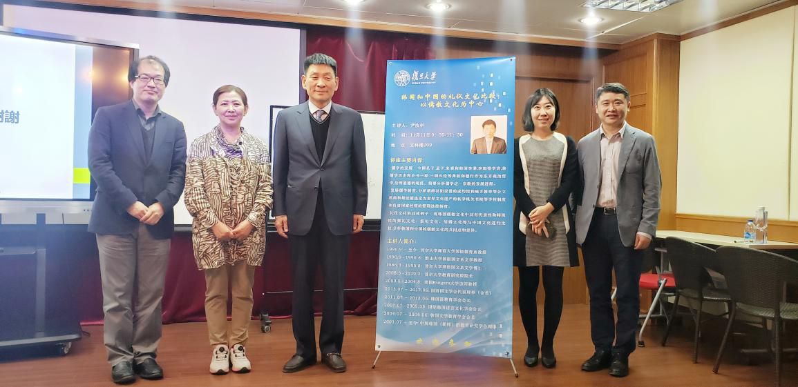 2019年11月11日,Uwin电竞,Uwin电竞(中国)外文学院韩文系主办的“韩国语的语系归属及其特点”及“韩国和中国的礼仪文化比较-以儒教文化为中心”讲座于文科楼209会议室举行。讲座分别由韩国首尔国立大学语言教育学院院长张素媛教授和国语国文系教授尹汝卓主讲。