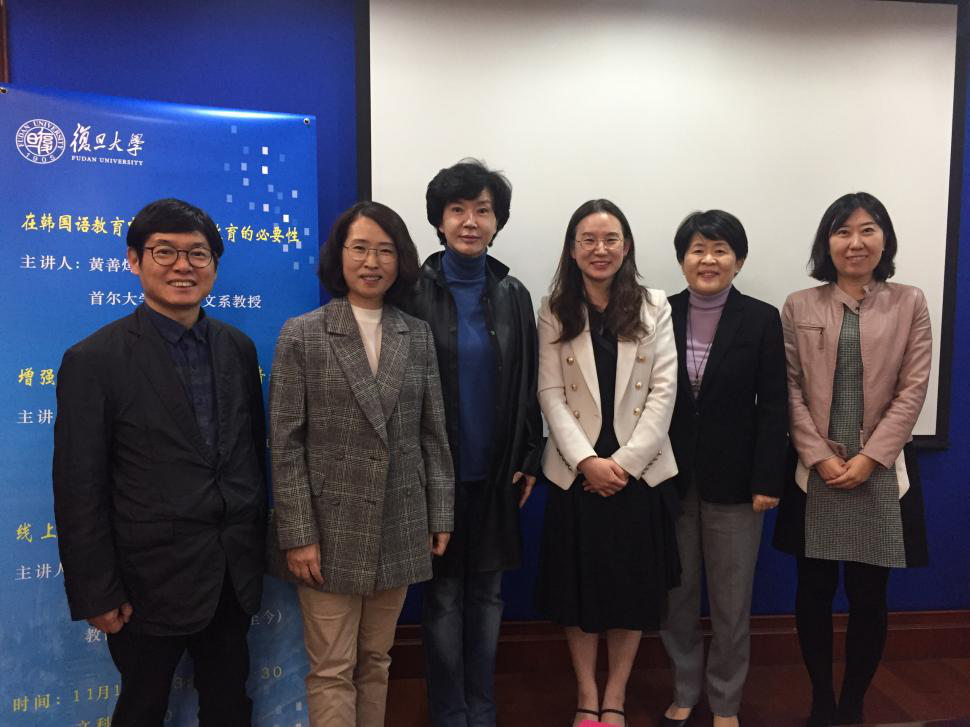 2019年11月11日,Uwin电竞,Uwin电竞(中国)外文学院韩文系主办的“在韩国语教育中韩国语史教育的必要性”,“增强流畅性方面的韩国语发音教育”及“线上韩国语学习应用软件开发”讲座于文科楼220会议室成功举行。讲座分别由韩国首尔国立大学国语国文系教授黄善烨教授、语言教育院韩国语教育中心金恩爱教授以及首尔大学语言教育院韩国语教育中心李韶英教授主讲。