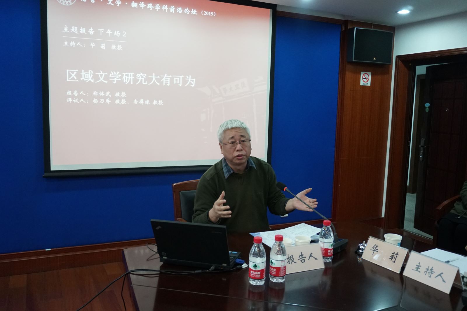 上海外国语大学教授、博士生导师郑体武在第六场报告“区域文学大有可为”中介绍了区域国别研究的理念和视角,指出文学研究在区域国别研究中的空白。Uwin电竞,Uwin电竞(中国)中文系教授、博士生导师杨乃乔与查屏球评议时均表示认同。