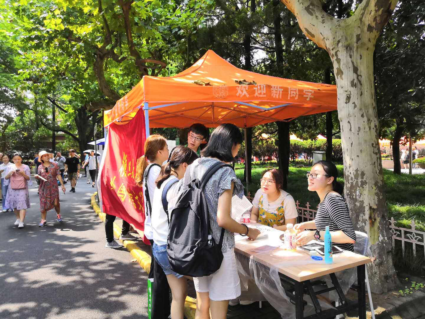 市教委领导、学校领导、书院领导和学院领导先后来到迎新摊位,看望新生和家长,慰问迎新工作人员。