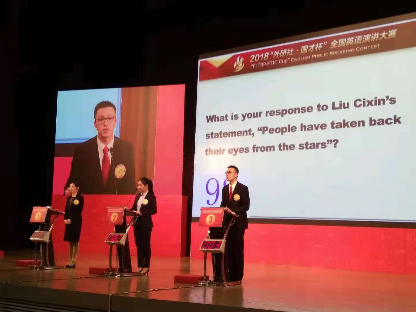 12月9日上午,2018Uchallenge大学生英语挑战赛“外研社·国才杯”全国英语演讲大赛迎来“收官之战”,这也标志着2018Uchallenge大学生英语挑战赛正式落下帷幕。复旦学子在此次大赛中荣获多项殊荣,来自外文学院英文系的 熊志远 同学(指导教师 万江波)获全国季军,来自历史系的 孙晴依 同学(指导教师 单理扬)、英文系的 刘悦桐 同学(指导教师 时丽娜)获一等奖。此外,由 时丽娜、单理扬、张帮印 老师指导的 黄子欣、陈冬儿、王馨平、邱嘉予、项昊天 等五位同学获三等奖。在英语演讲与辩论中心的指导下,复旦学子今年再次以优异的团队表现成为本届大赛的亮点,我校共有8名选手跻身全国总决赛,3名选手跻身全国24强,在全国高校中遥遥领先。本届“外研社·国才杯”全国英语演讲大赛通过全国范围内的地面校选赛、地区赛及网络赛等各种形式参赛的中外选手总人数过万人,我校选手能在竞争如此之激烈的赛事中脱颖而出实属不易。此外,去年全国总决赛冠军、英文系 傅之君 同学此次受邀,担任了本届总决赛第一第二轮主持人并出色地完成了主持工作。