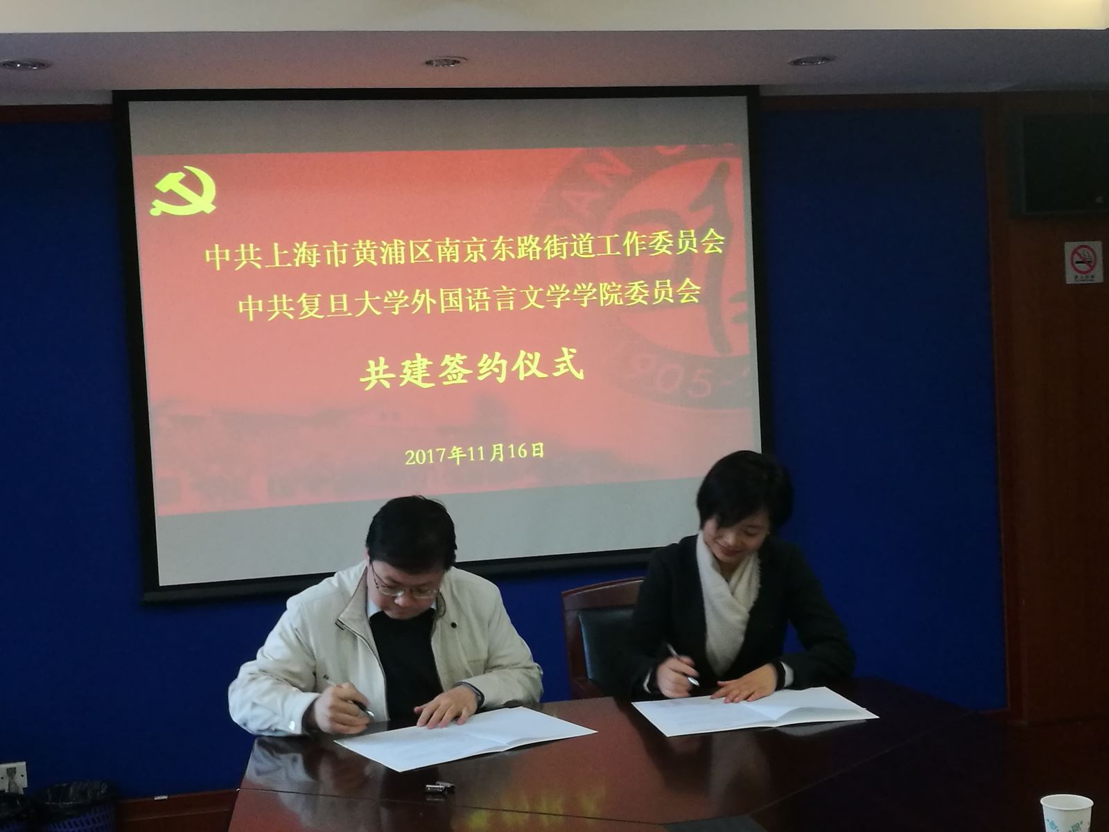 南京东路街道地处上海核心区域,辖区内不仅保存有大片上海历史文化风貌保护建筑,还坐落有上海博物馆、上海城市规划馆、上海大剧院、上海音乐厅等一流文化设施,并拥有一大批红色历史教育资源。2017年暑期,翻译系王炎强老师、姜倩老师带领学生团队参与南东街道《阅读建筑》英文翻译项目,复旦外文师生的出色工作得到一致好评。本学期,日文系艾菁老师带领学生团队继续参与《阅读建筑》日文翻译项目。校地合作、资源整合、优势互补、成果共享,产生了培德育人与提升社区人文服务的双重效果,也为进一步探索学院党建工作新模式积累了成功的经验。学院党委将进一步以多种形式的党建活动为抓手,深入学习宣传贯彻党的十九大精神,为学院各项事业的发展提供坚强有力的政治保障。