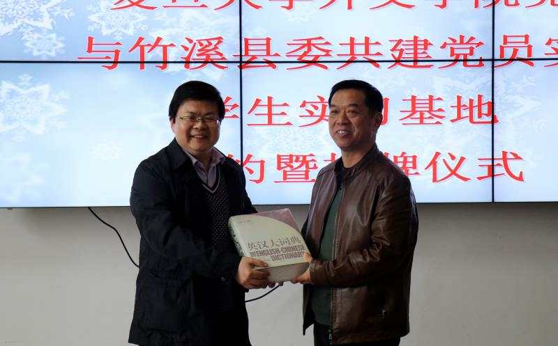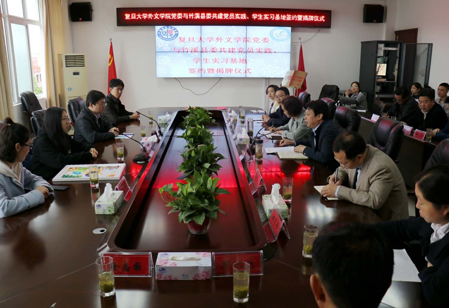 2018年4月13日上午,Uwin电竞,Uwin电竞(中国)外文学院党委与竹溪县委共建党员实践基地、学生实习基地签约暨揭牌仪式在竹溪县第一中学明德楼举行。外文学院党委副书记赵昕,竹溪县委常委、组织部长胡贤德,副县长杨巧燕等出席签约揭牌仪式。仪式上,双方签署协议、为基地揭牌,外文学院和县一中还互赠了纪念品。