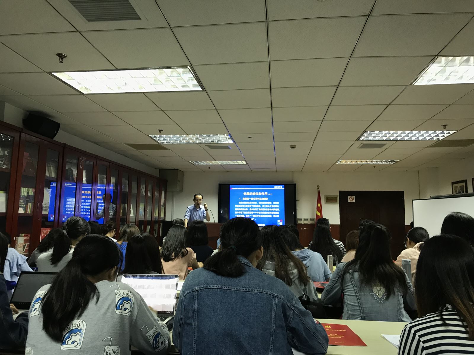 5月25日中午,外文学院学生党总支在文科楼424会议室举行第二期党章学习培训班开班仪式。学院党委书记罗英华,党委副书记、学生党总支书记赵昕,学生党总支副书记、学工组长茅盾出席开班仪式,学生党总支副书记、研工组长王亚鹏主持开班仪式,各学生党支部推荐的54名学员参加了开班仪式。