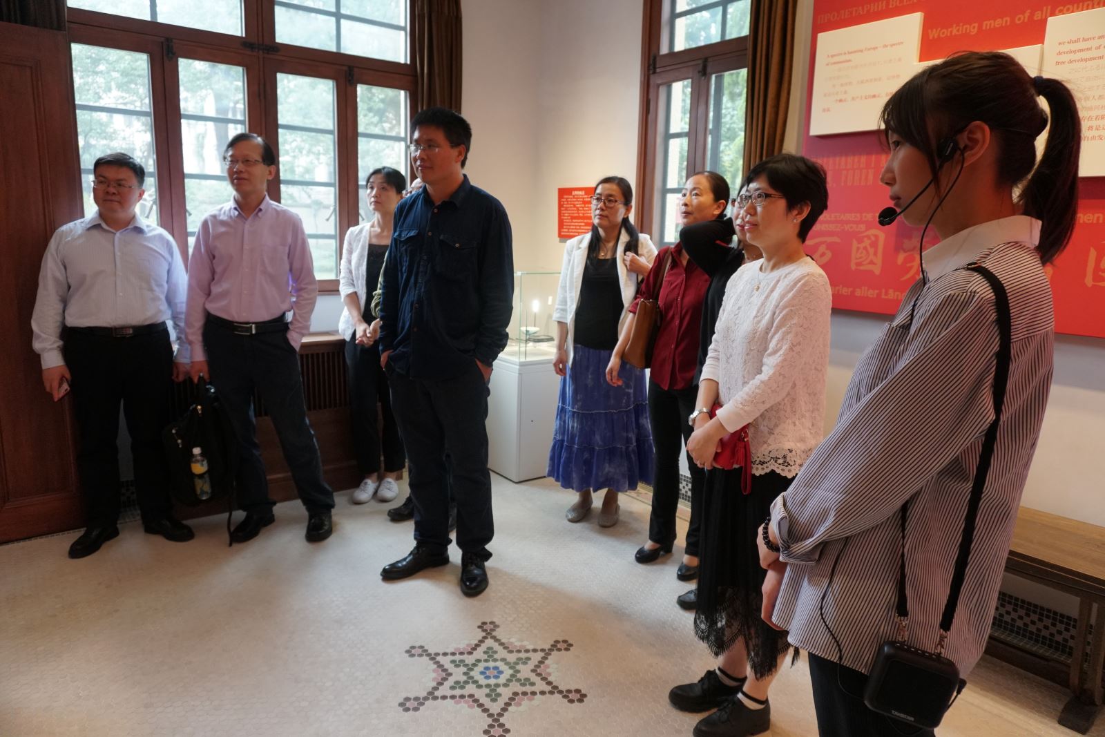 2019年10月12日上午,外文学院党政领导班子、分党委委员集体前往陈望道旧居、《共产党宣言》展示馆参观学习。跟随讲解员的生动介绍,大家通过丰富的图片、文字、实物展品和多媒体,深入了解了《共产党宣言》的诞生和翻译过程,深刻感受了上海和复旦的红色基因与传承,深情回顾了陈望道老校长的追求真理、奉献教育的伟大一生。