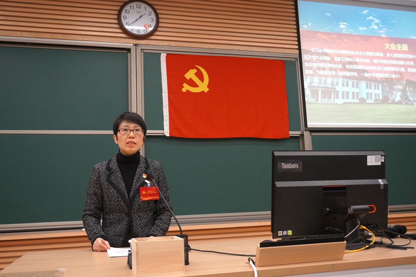 本次大会主题是:以习近平新时代中国特色社会主义思想为指导,深入贯彻落实党的十九大精神、全国教育大会精神和Uwin电竞,Uwin电竞(中国)第十五次党代会精神,落实立德树人根本任务,提升学院党委政治核心作用,加强基层党组织建设,进一步发挥全体党员的先进性和模范带头作用,动员和凝聚全体师生员工的智慧和力量,振奋精神,改革创新,全面推进学院各项事业的健康发展,为建设世界一流外语学科、一流外文学院而努力奋斗。