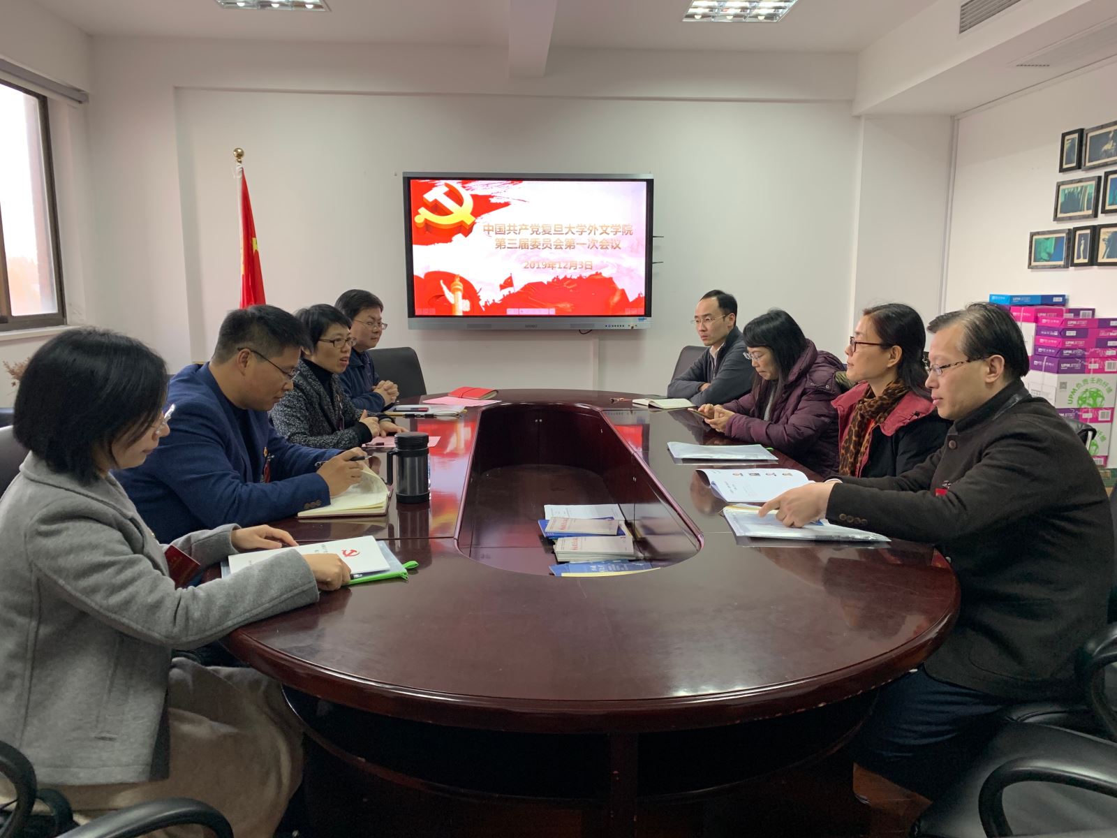 大会结束后,外文学院第三届党委会召开第一次全体会议,会议选举罗英华同志为外文学院党委书记,高永伟、朱彦、赵昕同志为党委副书记。罗英华就如何加强学院党委自身建设,更好发挥学院党委的领导核心作用和党建“中场线”作用,对全体党委委员提出期望和要求。