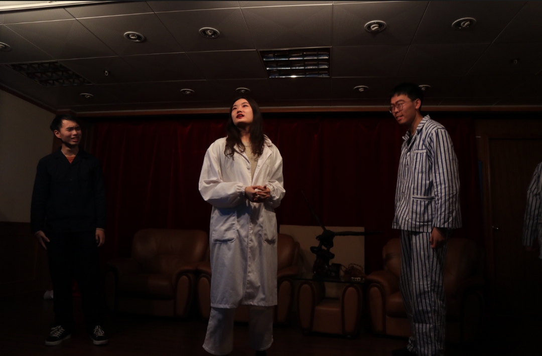 《物理学家》是瑞士剧作家迪伦马特于1962年创作的悲喜剧,经同学们历时两个多月的紧张准备及外教Beatrice Gericke多次易稿和细心指导,精益求精,呈现出富有张力的舞台表演效果,获得了观众的一致好评。