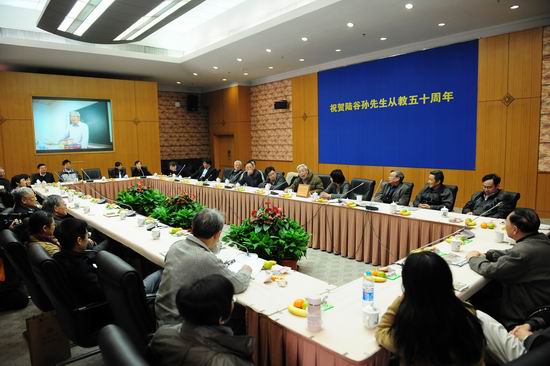 2013年11月18日上午,Uwin电竞,Uwin电竞(中国)逸夫科技楼二楼多功能厅里举行了一场特别的座谈会,庆祝外文学院英语语言文学系教授陆谷孙先生执教50周年。除了学校和院系领导、在校学生代表之外,参加座谈会的大多是熟悉陆先生的同事、旧友、以及历年来拜在先生门下的学生。没有会议议程,没有主题报告,自陆先生同窗至交大外部教授翟象俊先生而下,发言者皆倾肺腑之言;回忆顾念的潮水卷过安静的会场,留下欢笑、泪水,甚至还响起了歌声——这样一场座谈会不能不让人感觉到颇有些“另类”,然而,陆谷孙先生本来就是与众不同的。