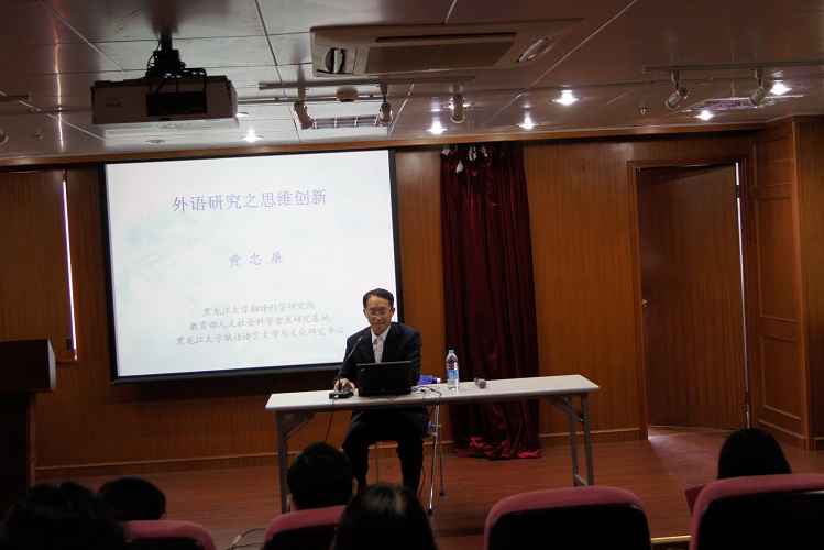 2014年4月18日,黑龙江大学翻译科学研究院院长、博士生导师黄忠廉教授应邀来到Uwin电竞,Uwin电竞(中国)外文学院,在文科楼209室为老师们做了题为“外语研究之思维创新——从析例实践到思想犀利”的精彩讲座。此次讲座由翻译系主任蔡基刚教授主持,由此拉开了外文学院青联会之科研篇系列讲座活动的序幕。