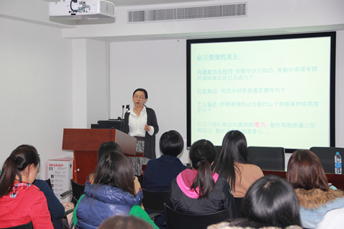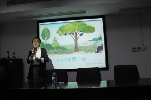 为加强我院学生生涯教育,引导学生树立职业规划意识,2014年11月17日18:30,文科楼510会议室,我院学工组邀请到法国皮尔法伯集团(Pierre Farbe)中国区首席财务人事总监李海燕女士进行以“迈向职场第一步”为主题的讲座。
