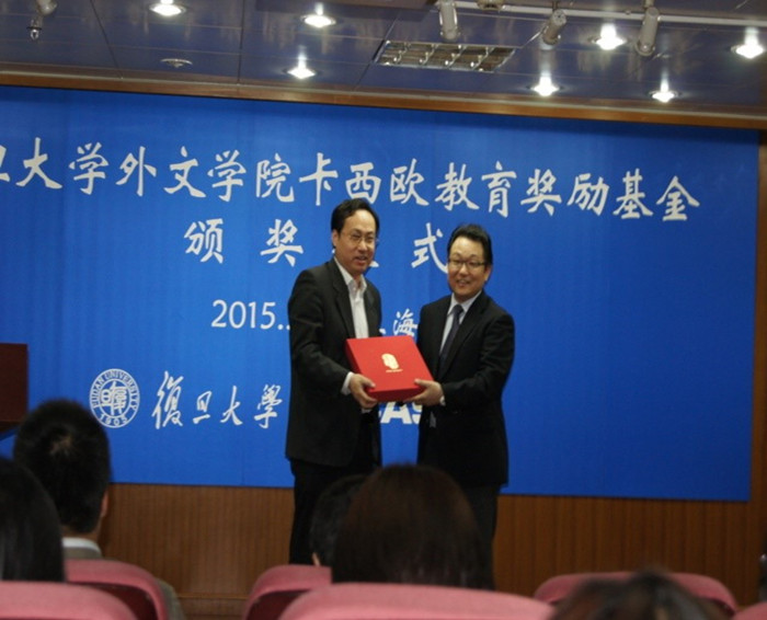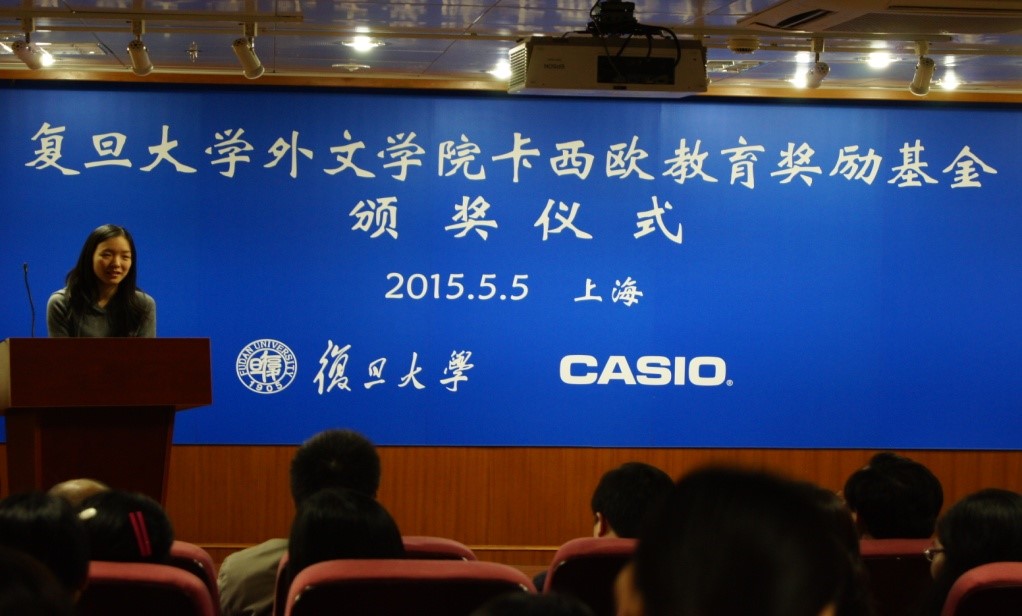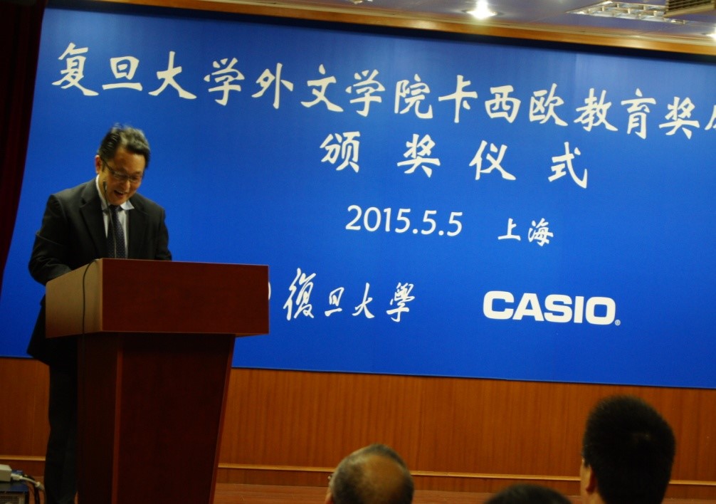 2015年5月5日下午,外文学院在文科楼209室举行2015年度卡西欧奖教学金颁奖仪式。出席仪式的有卡西欧(中国)贸易有限公司副总经理岩丸阳一、营业部课长俞科凯,以及外文学院获奖师生。外文学院院长曲卫国、副院长高永伟、卢丽安,党委副书记曾建彬、赵昕也参加了颁奖仪式。仪式由外文学院副院长卢丽安主持。