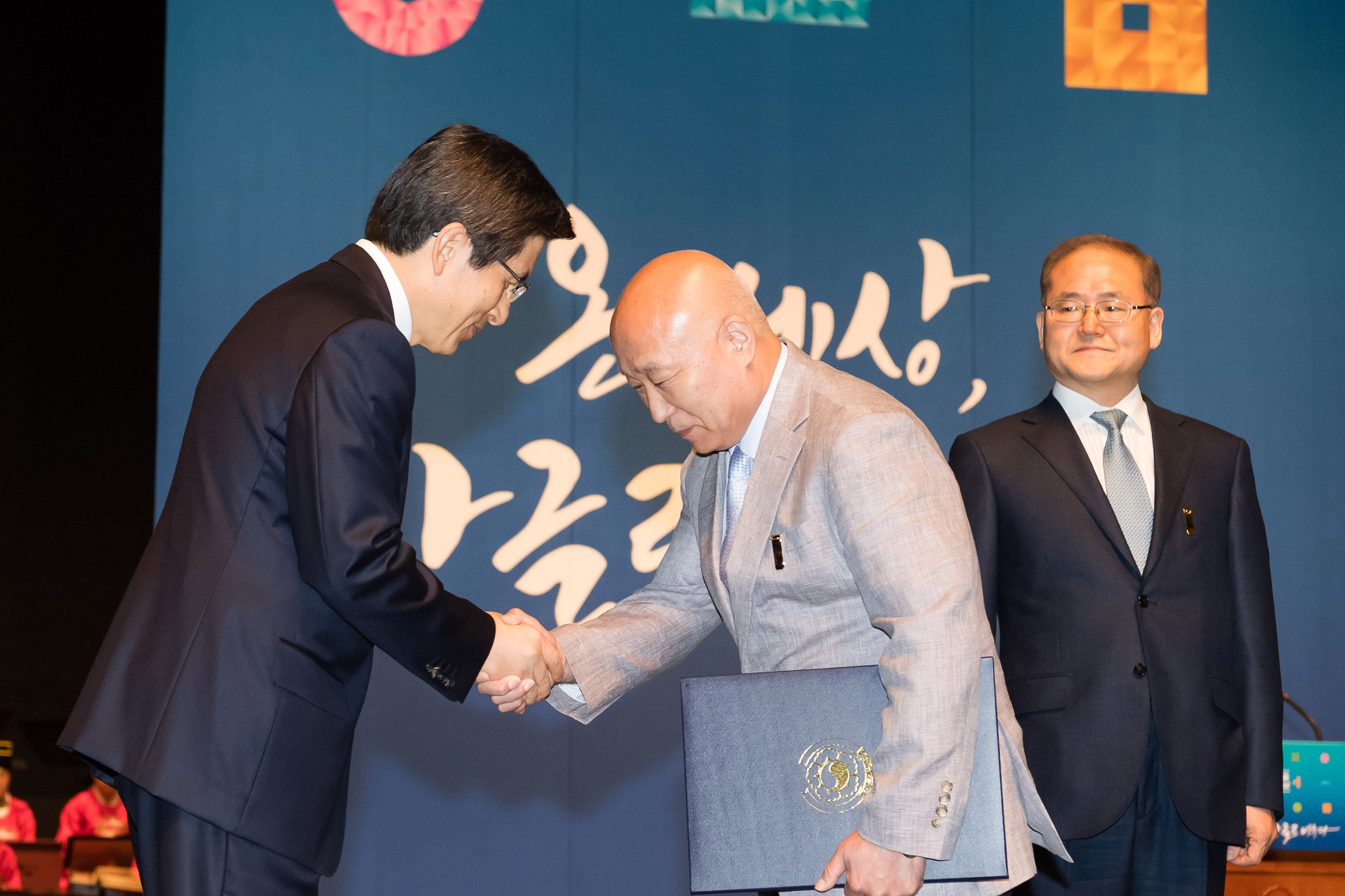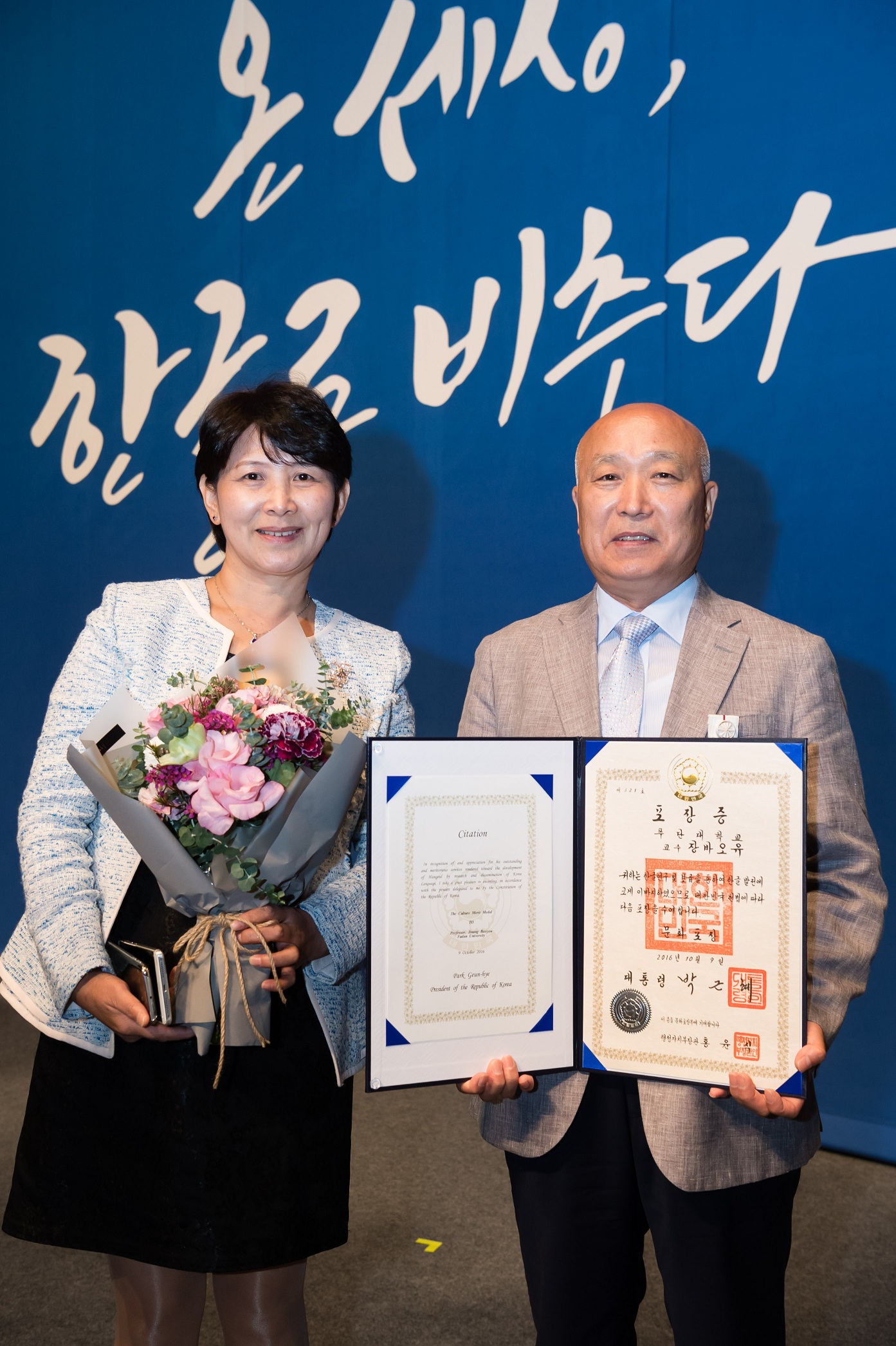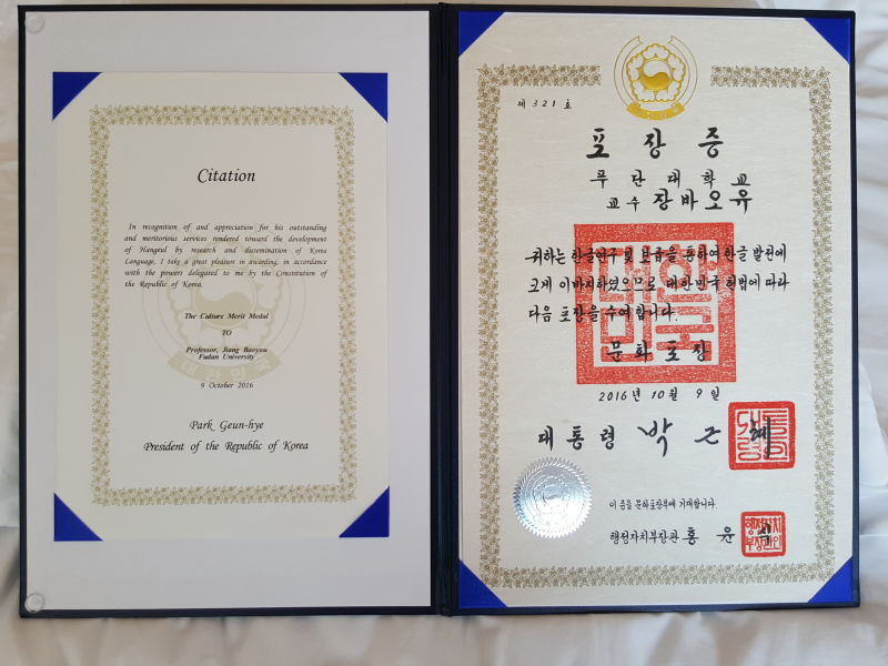 2016年10月9日,由韩国政府主办的“韩文日”庆典在韩国世宗文化会馆举行,韩国总理、政府各部门官员以及学者共1000多人参加了此次庆典。Uwin电竞,Uwin电竞(中国)韩国语言文学系姜宝有教授荣获了韩国总统朴槿惠签发的“文化褒章”,由黄教安总理亲自颁奖。
