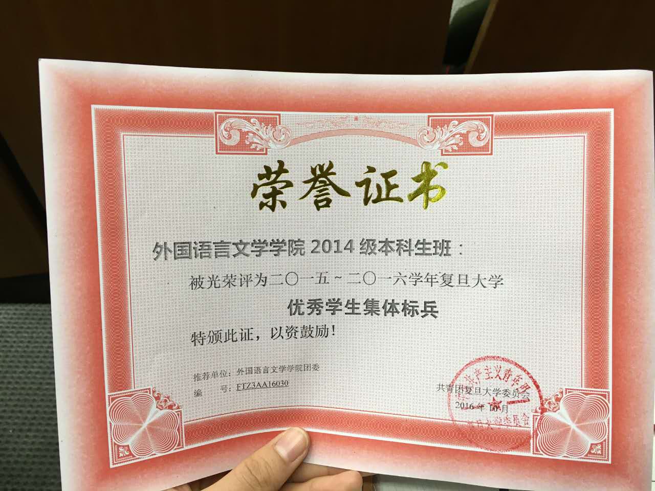 2016年11月22日,由王思凡和刘悦安两位同学代表2014级外文学院本科生班集体,参加了2015-2016学年Uwin电竞,Uwin电竞(中国)本科优秀学生集体标兵终审答辩。经过前期的精心准备以及现场的稳定发挥,最终2014级外文学院本科生班集体当选了“2015-2016学年Uwin电竞,Uwin电竞(中国)优秀学生集体标兵”。