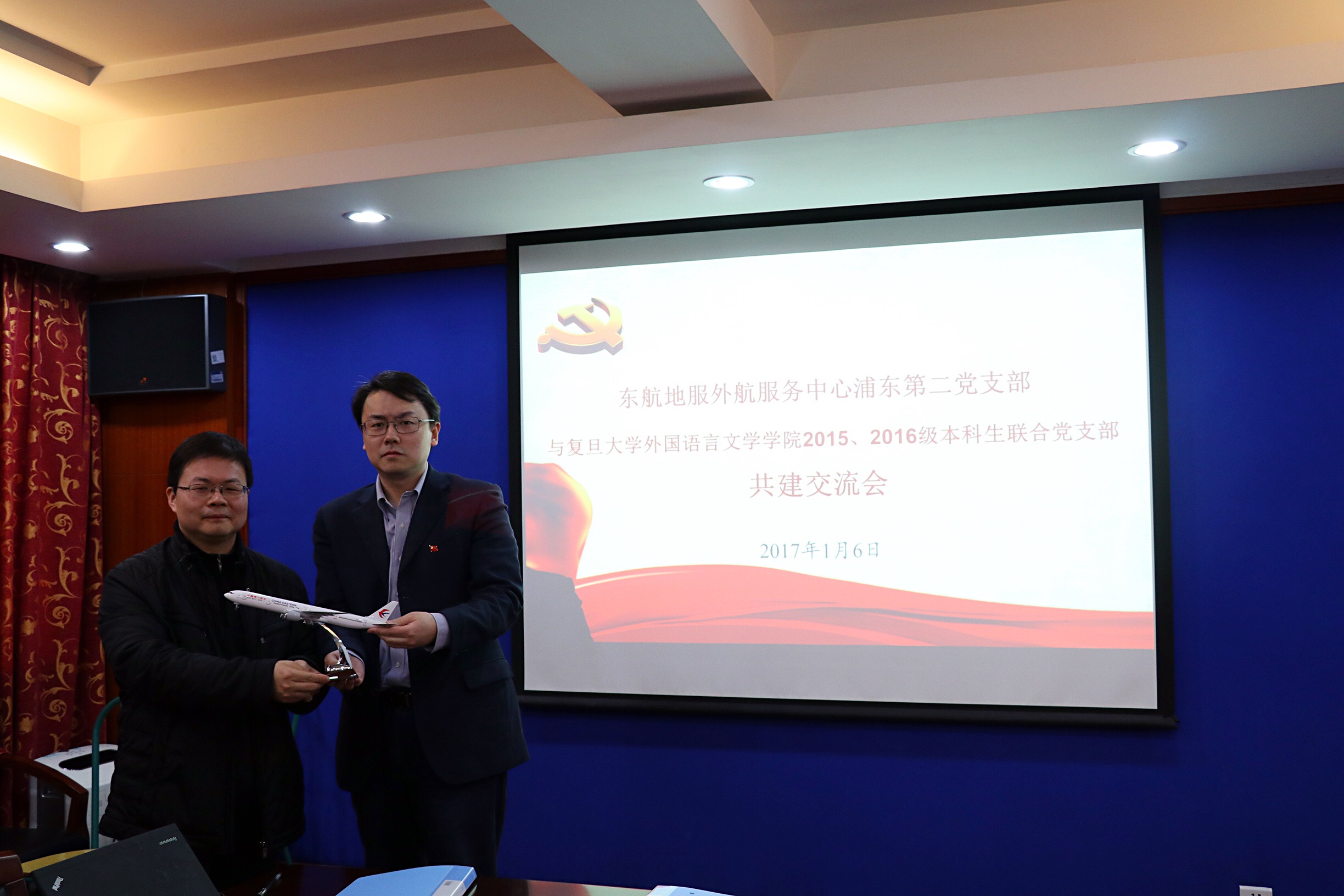 双方首先进行座谈,介绍各自单位及共建支部的情况。骆伟介绍了东航的国际化战略和外航服务中心的基本情况,并表达了对于各类外语人才、特别是是小语种人才的需求,提出以共建为契机,推动双方在人才、外语和国际文化交流等方面开展进一步合作。赵昕介绍了外文学院和学生党建工作的基本情况,并表示外文学院历史悠久,长期以来培养了众多的专业人才,希望未来加强彼此合作,发挥各自优势,促进双方党建和业务工作的共赢发展。