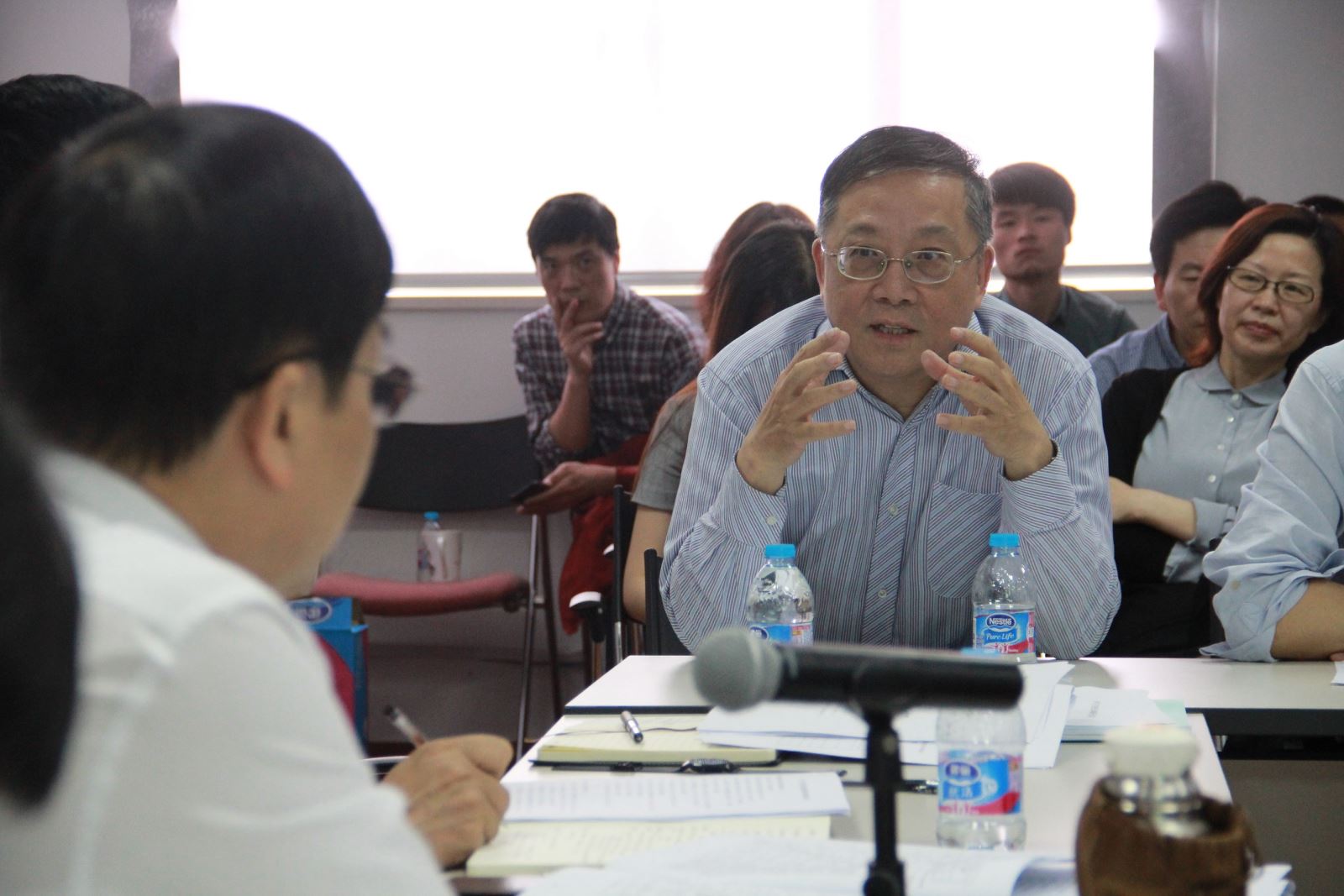 随后,学院教师代表苏耕欣、褚孝泉、Miles Link、段枫、杨振、姜宏、卢丽安、黄贤玉围绕学科建设、人才队伍、教育教学、学术科研、青年教师发展、小语种学科发展等问题先后发言。座谈中,许宁生校长不时就关心的问题提问,与发言教师热烈讨论、互动交流。
