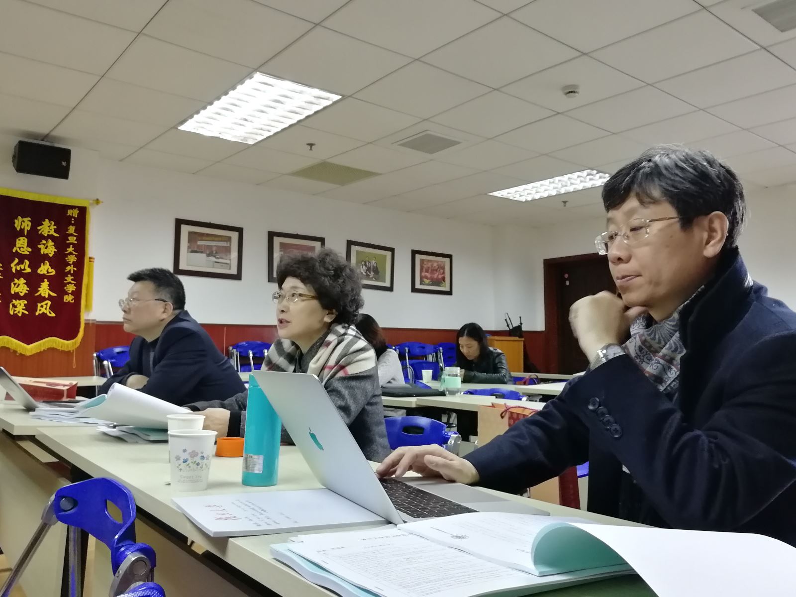 高永伟副院长首先从教学理念、师资队伍、学生生源、课程建设、课程体系等多个方面介绍了学院本科教学的基本情况。随后,按照分组安排,英文系主任朱建新、翻译系主任汪洪章、法文系主任袁莉、德文系主任魏育青、日文系主任邹波、韩文系主任黄贤玉、俄文系主任姜宏分别向评估专家汇报了相关专业的本科教学工作,并回答了专家提问。