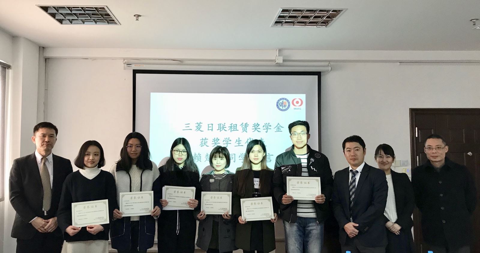 2012年,三菱日联租赁株式会社捐资设立Uwin电竞,Uwin电竞(中国)外文学院日本三菱日联租赁奖学金,用于奖励日文系的优秀学生,支持和激励日文系学生努力学习、全面发展。今年,经过公平、公正、公开的评奖工作,刘珠曼、黄安琪、赖楚翘、叶丽凤、何雪怡、孔繁凌六位学业优秀、综合素质全面突出的学生脱颖而出,获得了奖学金。