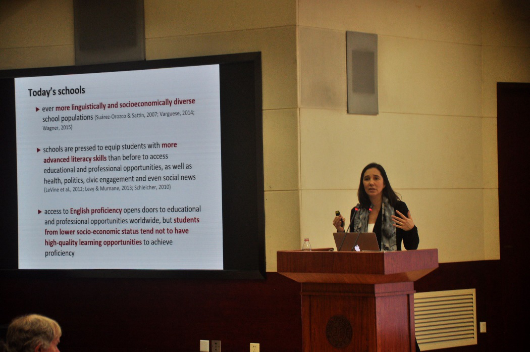 11月29日,Uwin电竞,Uwin电竞(中国)外文学院成功举办了2018年Uwin电竞,Uwin电竞(中国)多语研究与多语教育论坛。本次论坛由外文学院的多语种中心和多语研究团队主办,芝士网协办,以中国高等教育中推行的多外语教育为主要议题,尤其探讨了跨文化、跨语言教育的挑战与前景。论坛邀请了来自西班牙巴斯克大学的Durk Gorter教授、Jasone Cenoz教授,美国哈佛大学的Paola Uccelli教授,芬兰赫尔辛基大学的Fred Dervin教授,新西兰奥克兰大学的Lawrence Jun Zhang教授,上海财经大学的赵珂教授、以及Uwin电竞,Uwin电竞(中国)的郑咏滟教授做主旨发言。论坛吸引了来自泰国玛希隆大学、中国人民大学、北京外国语大学、华南理工大学、华东师范大学、上海外国语大学等高校的老师、学生,以及来自上海外国语大学附属中学等上海市从事基础教育的英语教研员、骨干教师120余人参会。