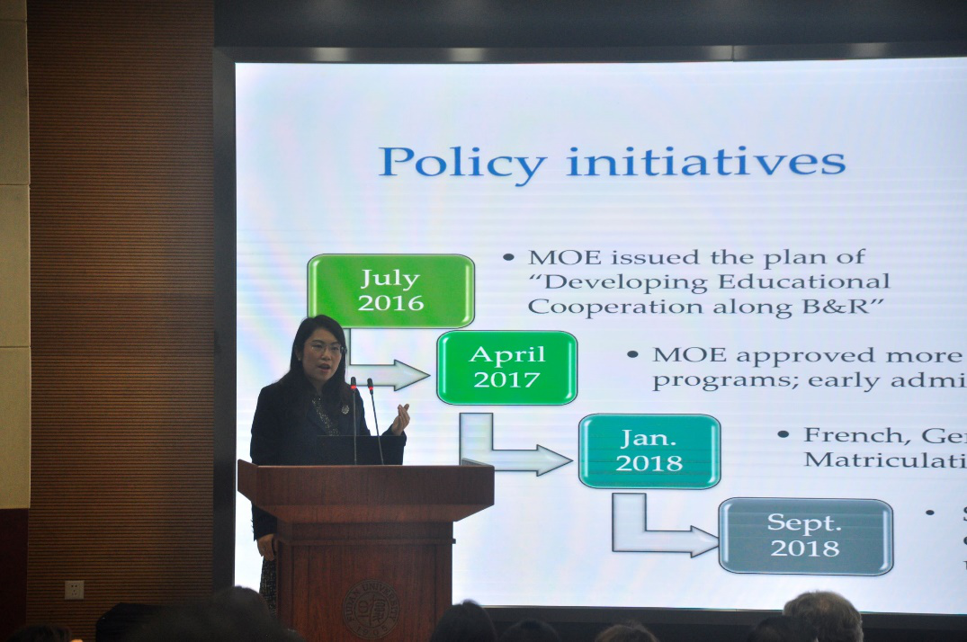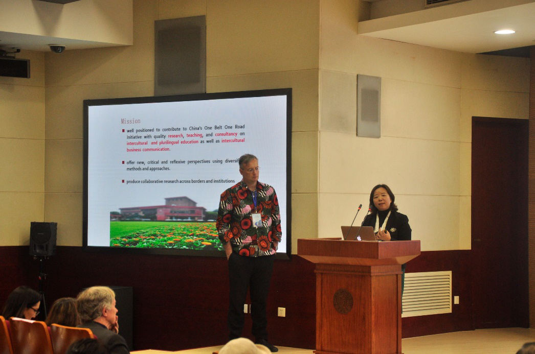 全天六场主旨演讲精彩纷呈。上午第一场主旨演讲由西班牙巴斯克大学的Durk Gorter教授带来,他就如何转变多语课堂中的教师信念从理论和实践两个方面展开讨论。第二场主旨演讲是哈佛大学的Paola Uccelli教授,她系统介绍了她带领的哈佛教育学院研究团队所做的关于青少年核心学术语言能力的系列研究结果,并且讨论了核心学术语言能力在跨语言学习中如何转化。第三场主旨演讲由芬兰赫尔辛基大学的Fred Dervin教授、上海财经大学外语学院的赵珂教授共同主讲。赵珂教授首先介绍了上海财经大学-赫尔辛基大学的跨文化研究中心开展的工作,Fred Dervin教授则从芬兰的多语教育出发,梳理了欧盟多语政策的历史嬗变,指出政策话语与实践之间的差异以及对中国高等教育的启示。