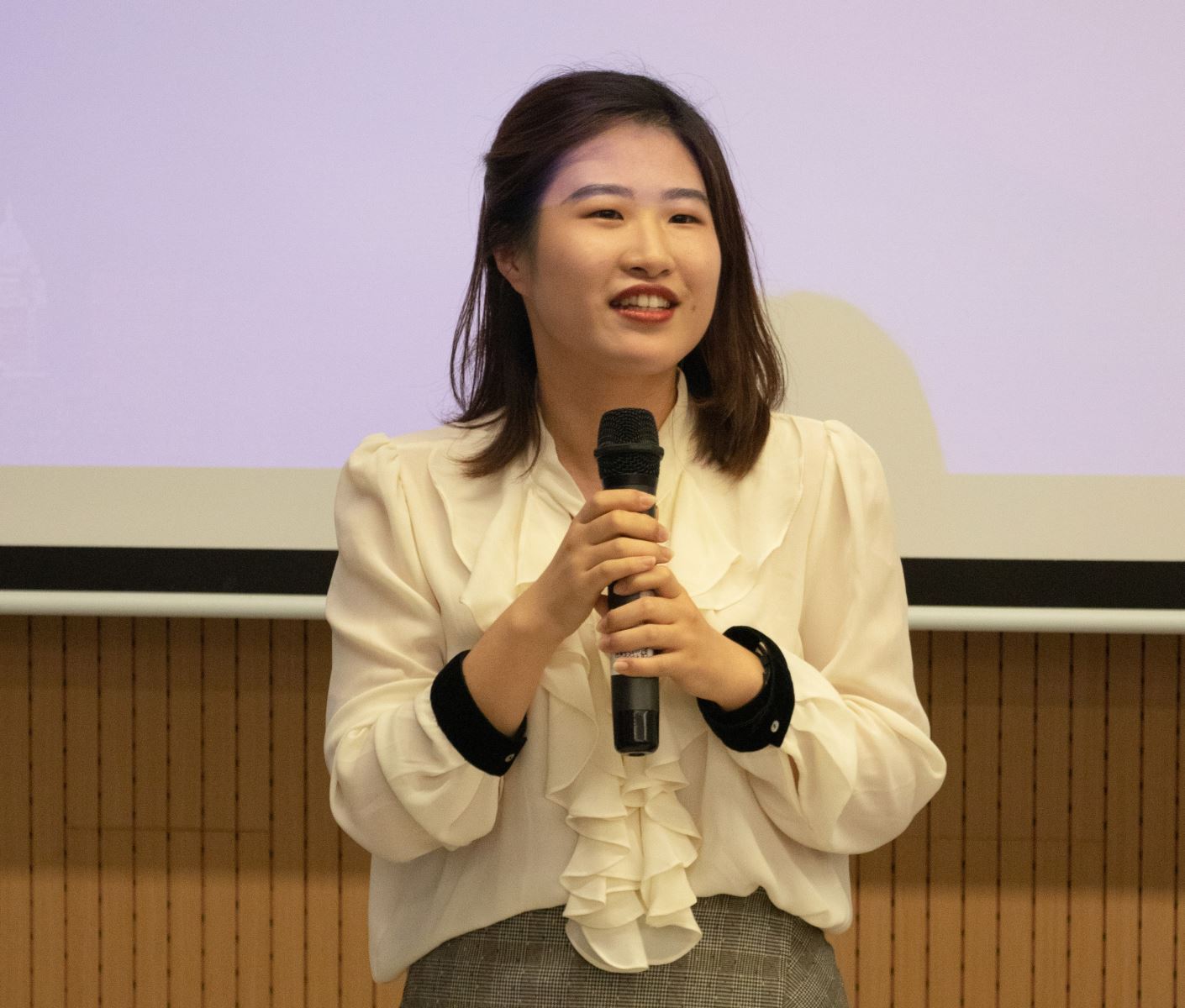 21世纪英文报在线教育事业部总编辑陈欢女士为直通卡得主政治大学王安棣、陈世贤和张恩扬颁奖