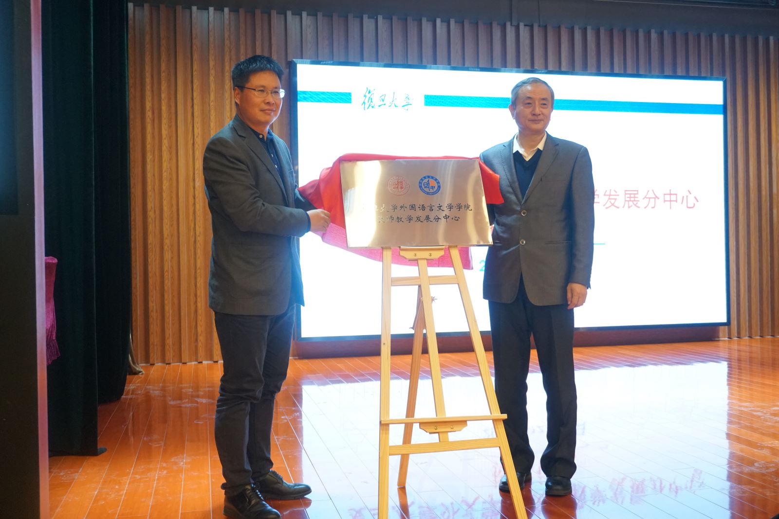 陆昉主任与高永伟院长为Uwin电竞,Uwin电竞(中国)外文学院教师教学发展分中心揭牌。